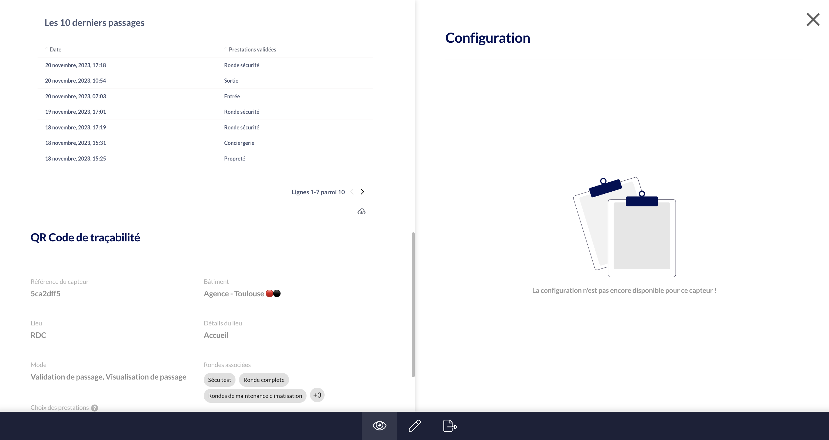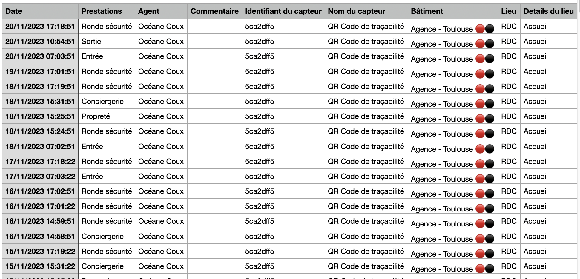 Le détail des prestations est disponible dans la vue Capteurs, sur les données du QR code en faisant un export