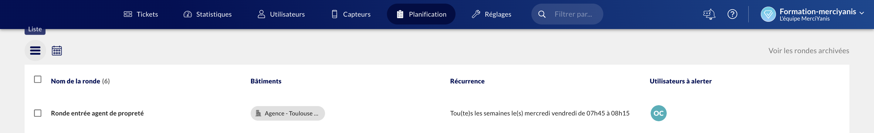 Les utilisateurs à alerter : toutes ces personnes recevront des alertes mails en cas de non validation de la ronde (passage en dehors des horaires de la ronde ou mauvais usage du capteur) (voir l'article La gestion des alertes mail)