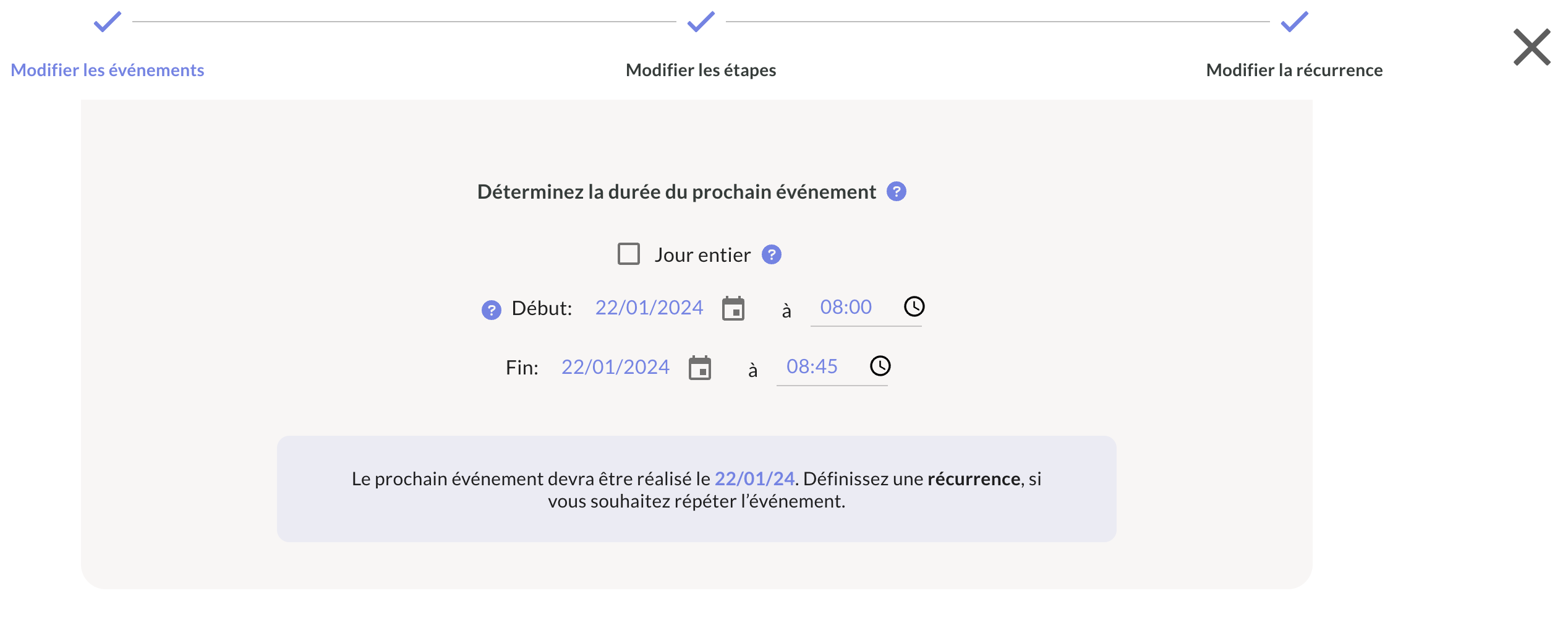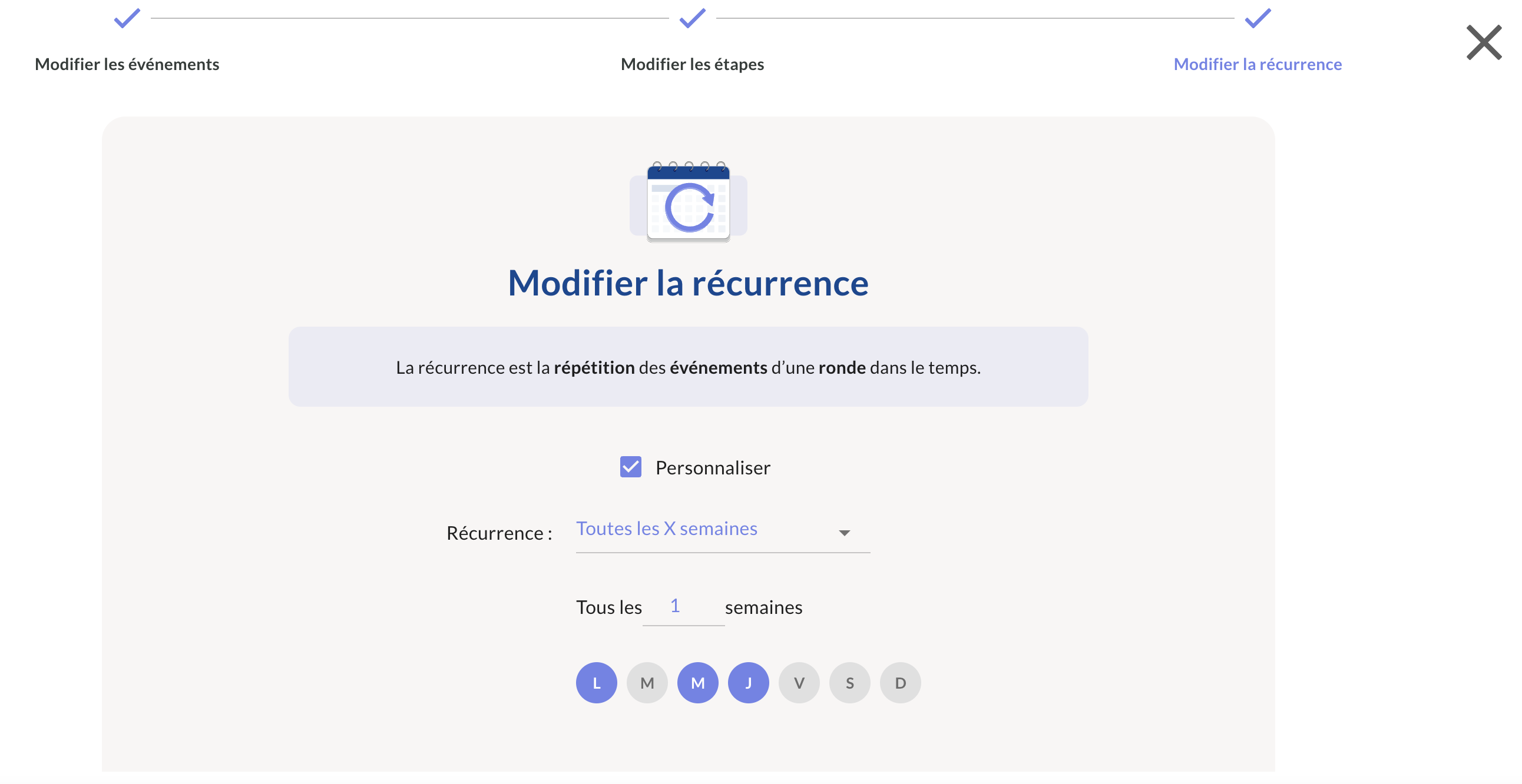 Modifier les événements, les étapes ou la récurrence d'une ronde